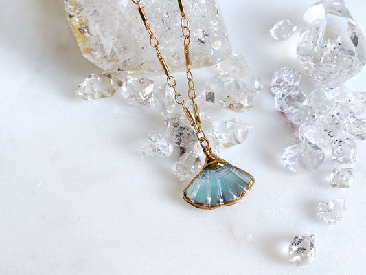 Carved Aquamarine Shell Necklace
