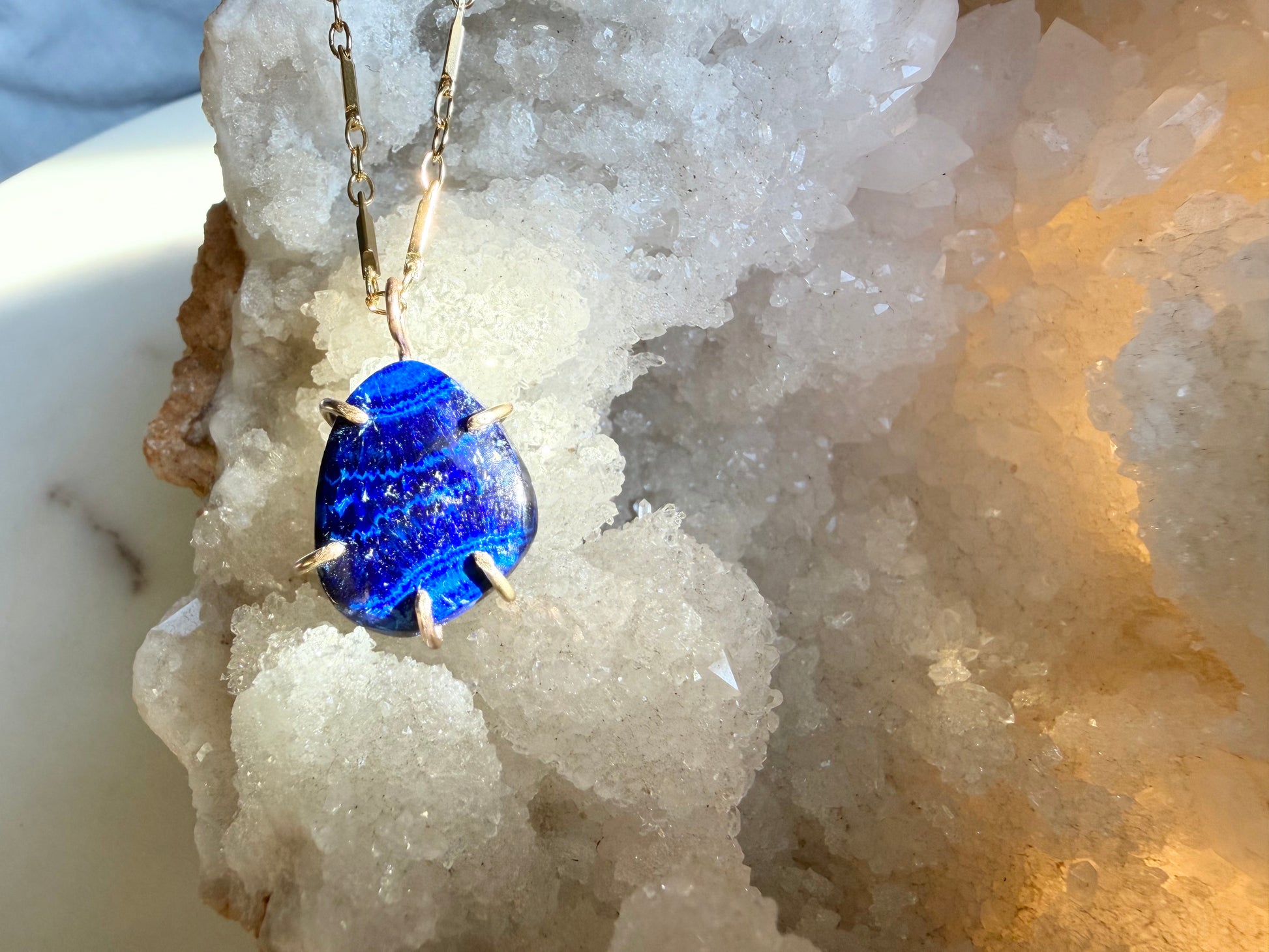 This natural azurite is the most stunning blue! And no, It's not dyed, it's just that gorgeous! Polished to perfection, this stunning piece has texture and beautiful patterns that give it a wonderful character.
