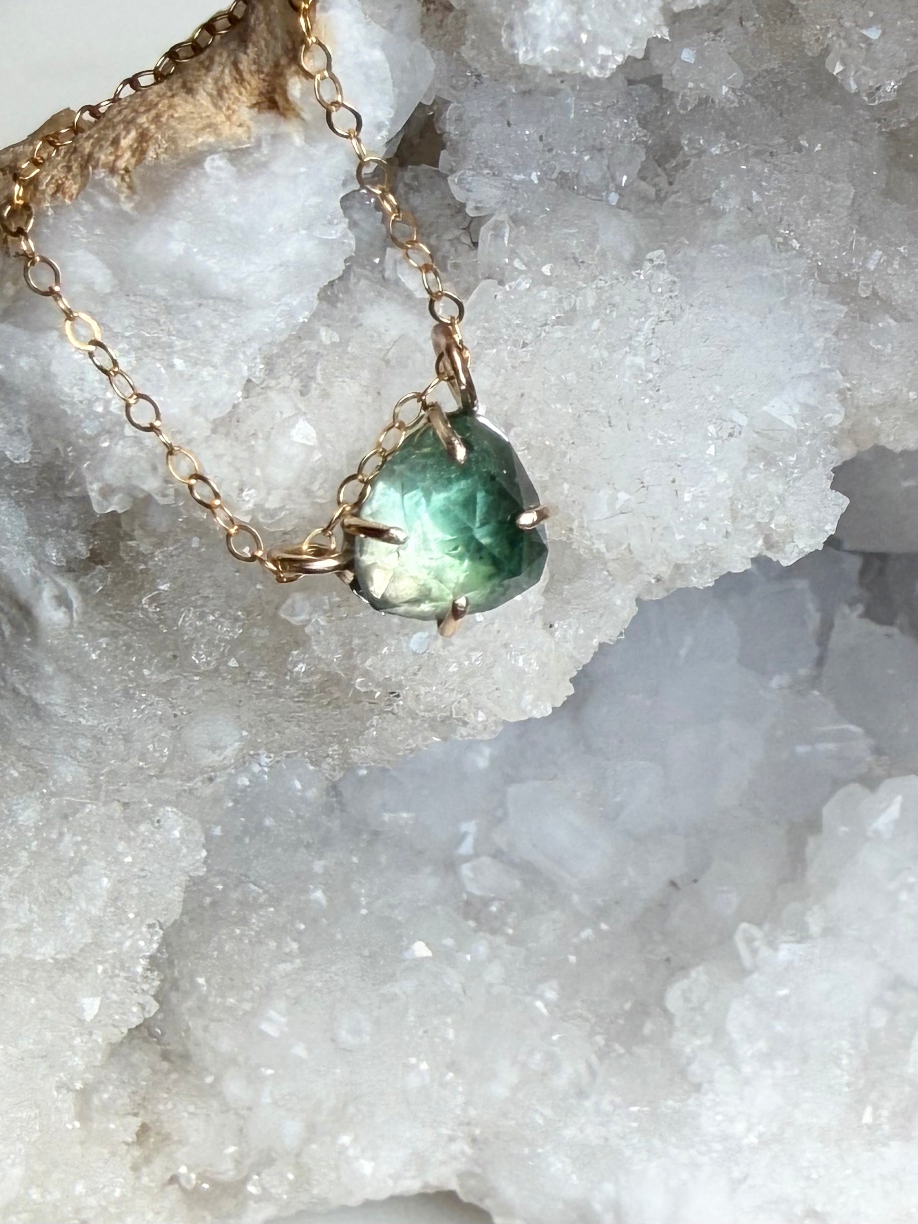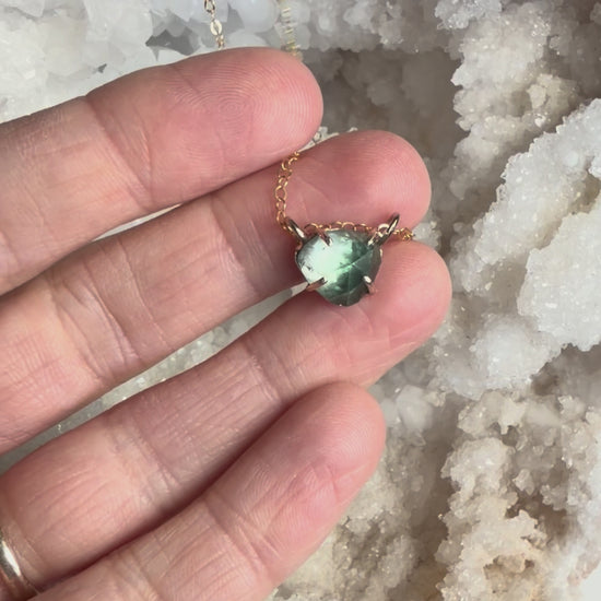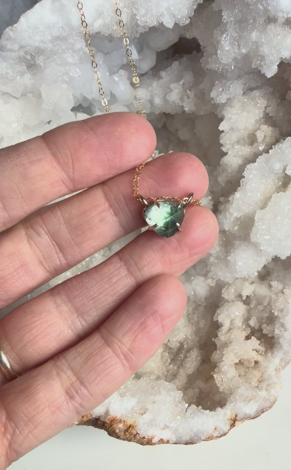 A bright star of a gem, this bicolor rose cut tourmaline is absolutely radiant. Pale on one side and deep green on the other, this piece has such a dynamic personality with its mesmerizing movement and light shifting. A perfect heirloom piece!